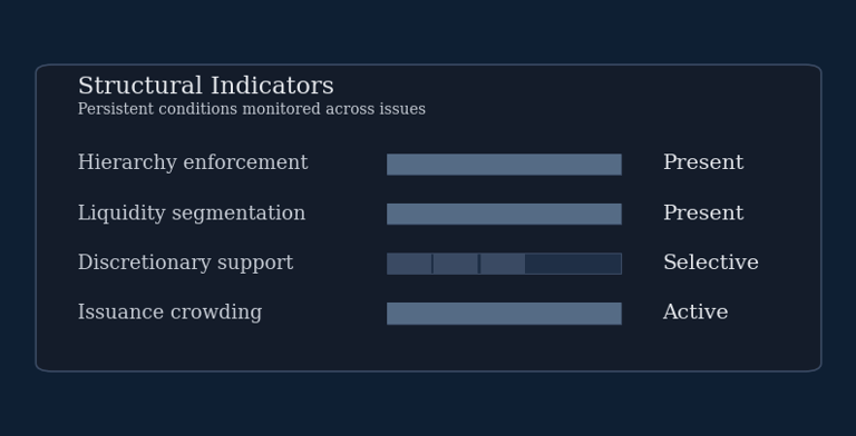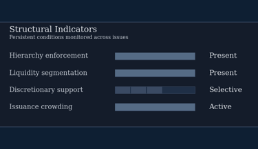 They describe what an instrument looks like in calm conditions. They do not explain how it will behave when conditions change. When regimes shift, these surface indicators lose explanatory power simultaneously. Structure does not.